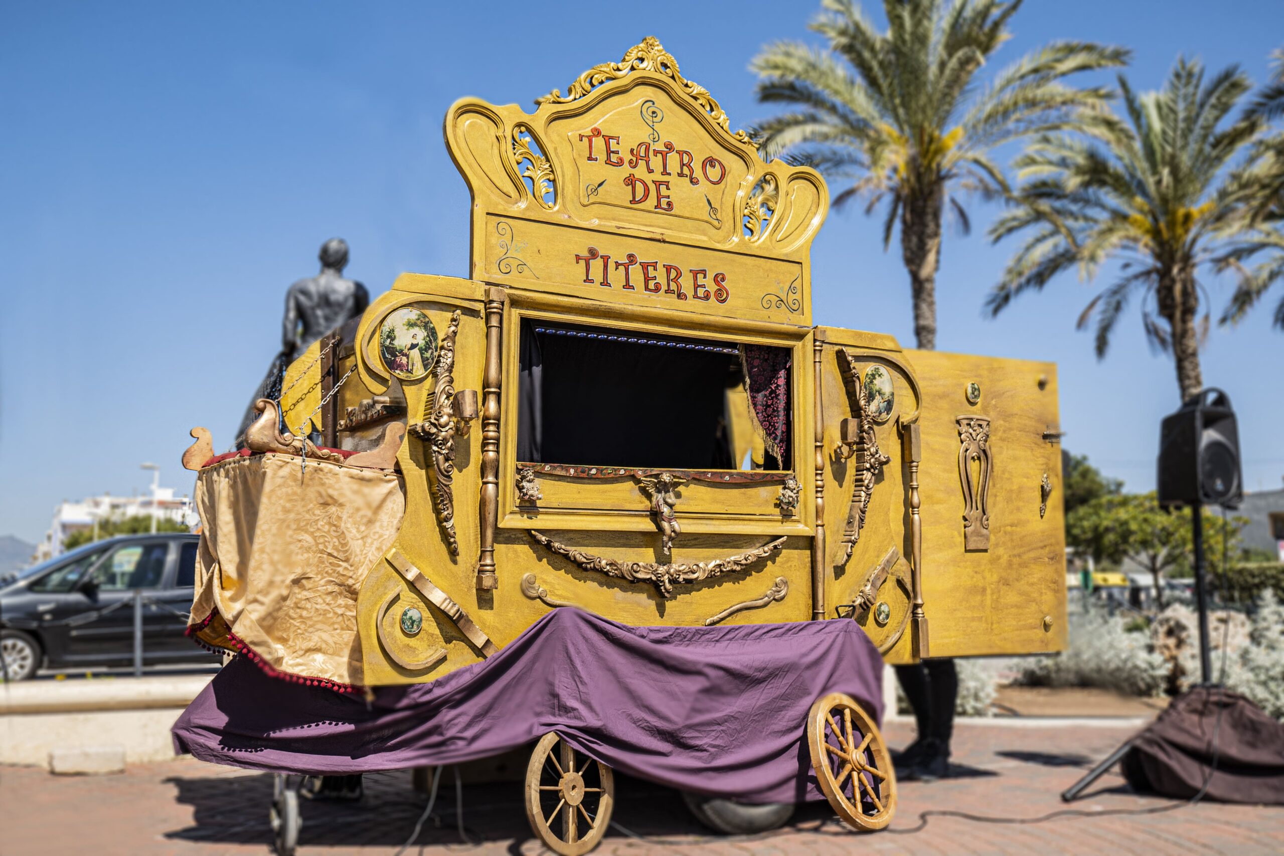 Carromato de Historias es una propuesta cultural innovadora que combina teatro de títeres y objetos para dinamizar espacios públicos y fortalecer la cohesión social. Adaptable a cualquier lugar, ofrece espectáculos gratuitos y participativos para toda la familia, promoviendo valores como el humor, la empatía y la interacción. Su repertorio incluye historias llenas de aventura y magia, como Godofredo y el Caballero Rojo, Godofredo y la Aventura Marina, Drácula el Vampiro, Rapunzel, Albert va en busca del fuego y Juanito y el Dragón. Cada obra invita al público a disfrutar de narraciones envolventes, música y efectos especiales, haciendo del teatro de títeres una experiencia accesible y enriquecedora.