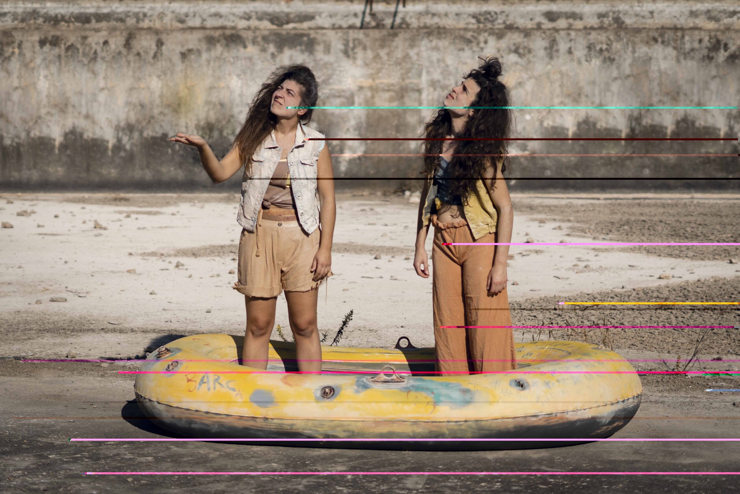 Una barca hinchable, anclada en una duna de arena, es el hogar de nuestras dos protagonistas. Atrapadas en una sequía terrible, en un futuro distópico, esperan heredar la lluvia que las llevarà hacia otro lugar. Y en la espera, la vida, una vida cotidiana dentro de un mundo absurdo. Trata sobre la supervicencia, el amor, las relaciones y el miedo, pero sobre todo la esperanza. Sus personajes nos muestran desde el optimismo, cómo es vivir mirando el mundo a través de los ojos de un niño y nos invitan a entusiasmarnos de nuevo mientras redescubrimos aquello que creíamos conocer.
