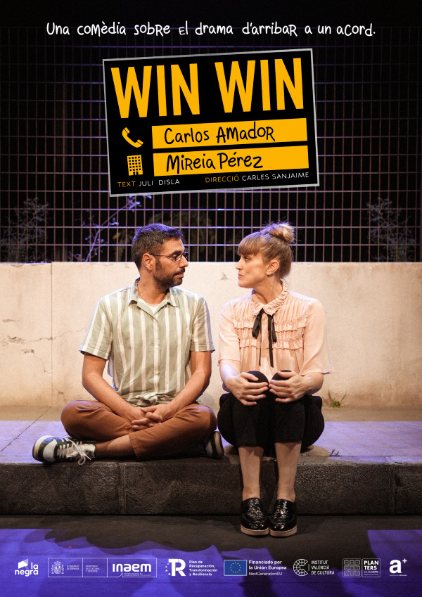 Mario vive de alquiler en el piso de Carla. El contrato vence y la propietaria convoca al inquilino para negociar un nuevo contrato. El tiempo ha pasado y las condiciones económicas no pueden ser las mismas. Como es natural, Mario ni puede ni quiere pagar más. Como es natural, Carla quiere sacarle más beneficio. Por otra parte, la relación entre ellos no es simplemente contractual, puesto que se conocen desde la infancia. Esto contamina la situación. La vida les ha llevado por caminos distintos y han acabado haciendo el contrato de vivienda que, en teoría, beneficia a los dos. En el fondo no se conocen, pero creen conocerse: por su pasado común, por la familia o por la idea de que nos hacemos de otras personas sin tener demasiada información. Con algunas personas debemos aparentar que nos importan o, al menos, que no les odiamos. Por interés propio, por egoísmo o por necesidad. ¡Si supiera la otra persona lo que estoy pensando de ella mientras me habla! WIN WIN es una comedia sobre el drama de llegar a un acuerdo. Un texto lleno de matices que, con grandes dosis de humor, hace reflexionar al espectador, incidiendo en las miserias, vulnerabilidades, miedos y valores que nos hacen comportarnos de formas tan diferentes, según qué situaciones, y al mismo tiempo tan similares en las formas.